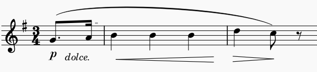 ピアノ(p)で始まり、クレッシェンド→デクレッシェンド