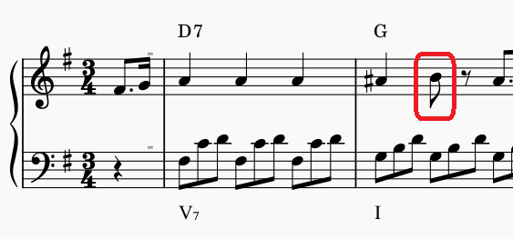 B楽節の終わりで主音になります。