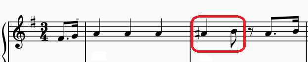 不安定な響きを作っているもう一つの要因が、メロデイーの半音の動きです。