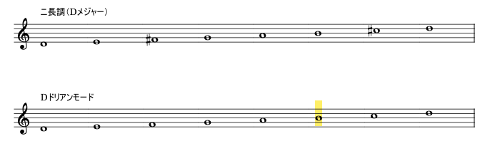 ・はじめの2小節:ニ長調(Dメジャー)→Dドリアンモード