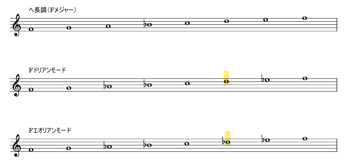 Dメジャー→Dドリアン→Fメジャー→Fドリアン→Fエオリアン