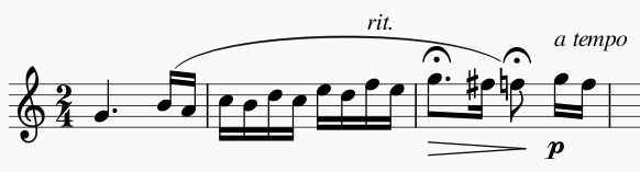 たった2小節ですが、rit.があり、フェルマータが2つあり・・となかなか盛りだくさん。